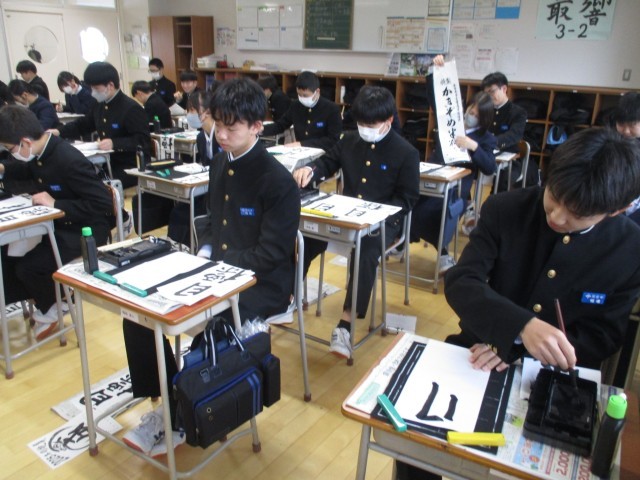 今年のお題は「目標達成」です。筆を持つ手にも思わず力が入る?