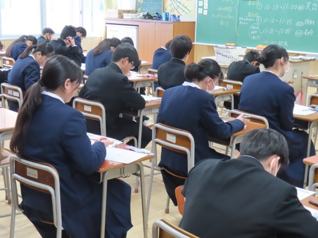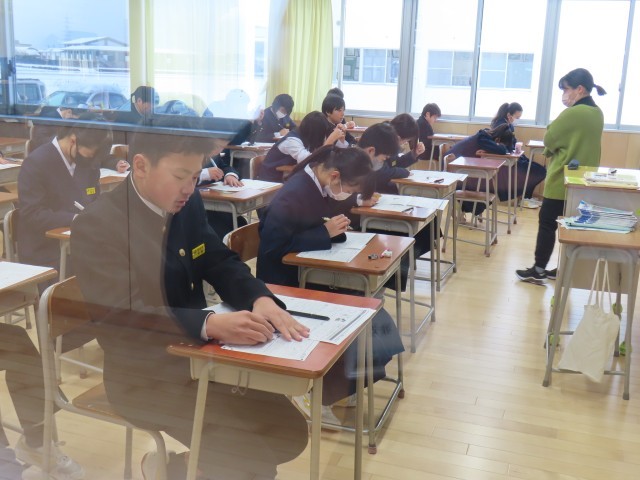 3時間目の1年生は「冬休み明けテスト」に臨んでいます。