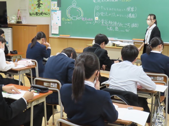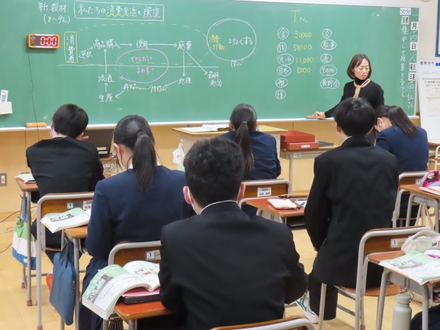 1月14日(火)2年生「授業の様子」 公開日 2025/01/14 更新日 2025/01/14 2年生 今日の2年生は・・・(写真上)1組理科「電流が流れる条件を考えよう」(写真中)2組家庭「私たちの消費生活と環境」(写真下)3組保体「バドミントン」