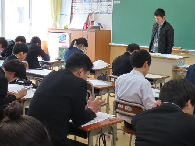 1月27日(月)3年生「授業のようす」 公開日 2025/01/27 更新日 2025/01/27 3年生 3時間目の様子です。私立高校の学力検査も目前に迫り、数学や国語の授業では問題を解きながら要点をまとめていました。美術は篆刻のためのアイディアスケッチです。(写真上)1組数学(写真中)2組美術「アイディアスケッチをしよう」(写真下)3組国語