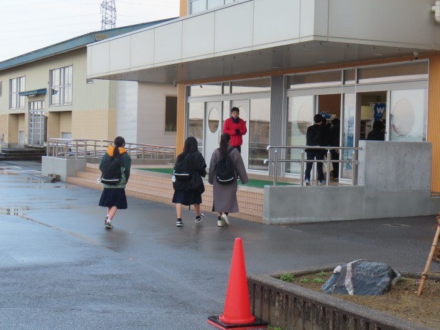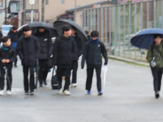 1月28日(火)「登校風景」 公開日 2025/01/28 更新日 2025/01/28 学校生活 おはようございます。曇り空、少し雨がぱらついています。地表付近はあまり感じませんが、高いところは強い南風がふいているようです。今日もよろしくお願いします。