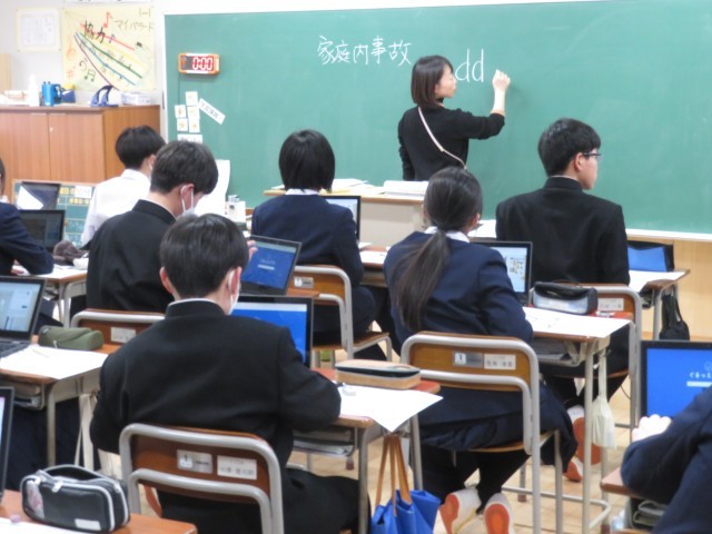 2月3日(月)1年生「授業の様子」 公開日 2025/02/03 更新日 2025/02/03 1年生 6時間目の授業は・・・(写真上)1組家庭「家庭内事故を防ごう」(写真中) 〃(写真下)2組国語「少年の日の思い出」