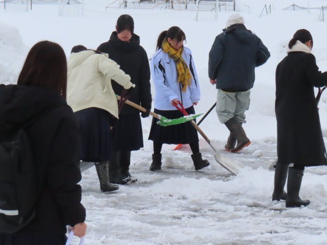 2月7日(金)「今朝も大変でしたね」 公開日 2025/02/07 更新日 2025/02/07 学校生活 おはようございます。連日の積雪で路面が荒れ、通勤・通学にも一苦労です。今日の除雪当番は1年1組。生徒玄関も体育館玄関も除雪しました。