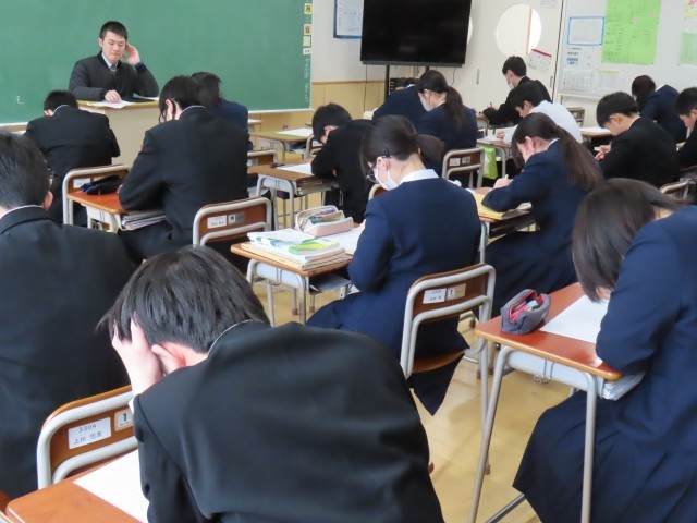 2月7日(金)3年生「受験シーズン真っ只中」 公開日 2025/02/07 更新日 2025/02/07 3年生 私立一般入試を終えてほっとするのもつかの間、次は高専一般、県立推薦。県立一般と続きます。受験教科は総復習に入っています。(写真上)1組理科「地震のゆれの伝わり方」(写真中)2組数学「円周角」(写真下)3組国語「1・2年の復習」