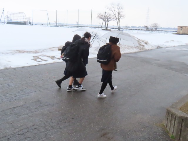 2月17日(月)「登校風景」 公開日 2025/02/17 更新日 2025/02/17 学校生活 おはようございます。早朝は青空がありましたが、西から雲が広がって、今は弱い雨が降ってきました。3学期も折り返しです。今日もよろしくお願いします。