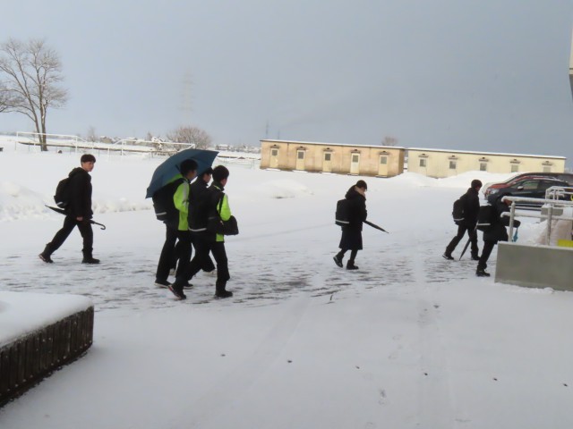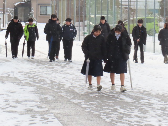 2月20日(木)「登校風景」 公開日 2025/02/20 更新日 2025/02/20 学校生活 おはようございます。今朝も気温が低く、路面が凍結していました。足元に注意しながら登校してくる生徒たちです。今日もよろしくお願いします。