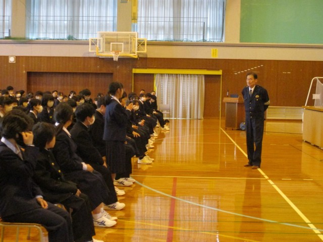 体育館で交通安全教室を行いました。