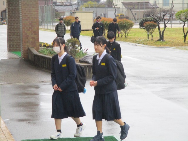 雨に負けねい元気な声で「おはようございます。」