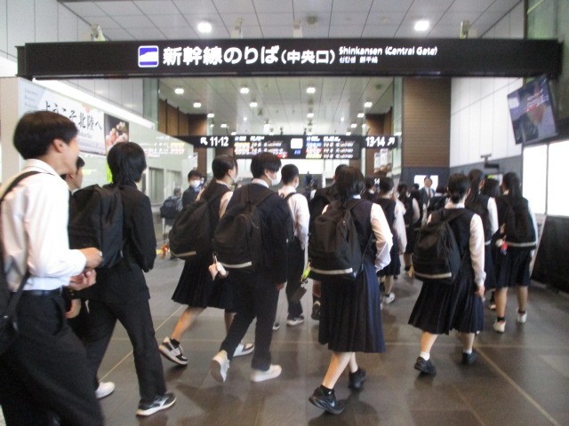 5月13日(火)3年生「修学旅行1日目」① 公開日 2025/05/13 更新日 2025/05/13 3年生 8時40分、予定通り富山駅を出発しました。旅行中の生徒の活動の様子は、このホームページに文章で紹介していきます。現地で教員が摂った写真は、旅行後、ホームページに順次掲載していきますので、それまでお待ちください。よろしくお願いします。