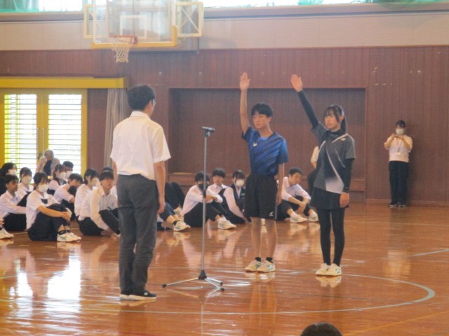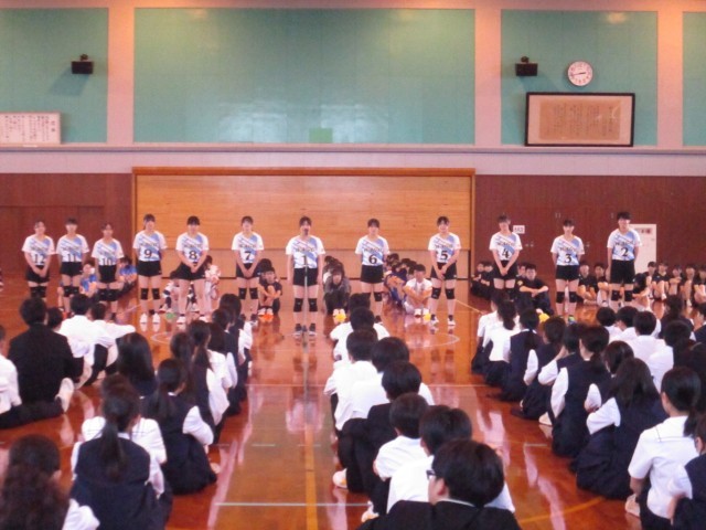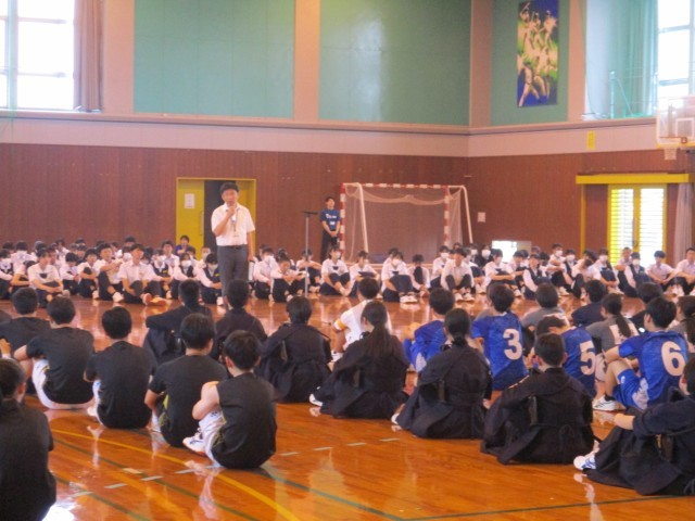 6月10日(火) 「市選手権大会壮行会」 公開日 2025/06/10 更新日 2025/06/10 学校生活 6月13日(金)から行われる、市中学校総合選手権大会の壮行会を行いました。(写真① 生徒会長のことば)(写真②~⑥ 各部の意気込み発表)(写真⑦ 校長先生からの激励の言葉)(写真⑧ 選手宣誓) +5