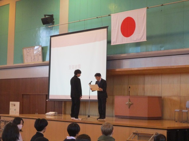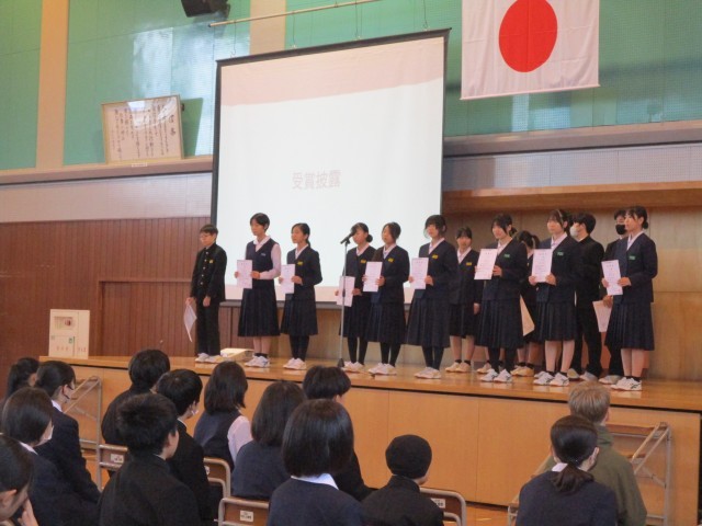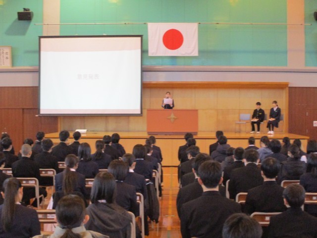 12月24日(水) 1学年 「受賞報告・意見発表の様子」