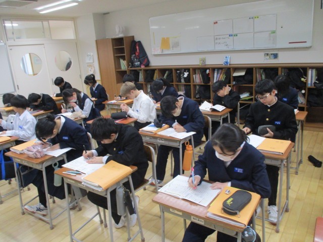 3年生が私立高校の一般入試を受検している裏で1学年は実力テストを実施しました。今日に向けて、自己調整を図りながら学習に取り組んできたものと思います。今の時点で自分はどこまでできるのかを客観的に考えて、4月を迎える前に苦手にアプローチしていけるといいですね。