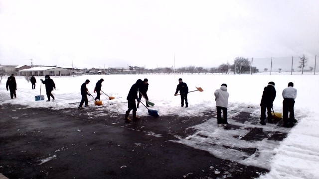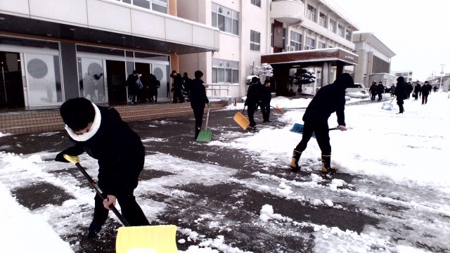 最長最強寒波到来。朝から除雪に励んでくれたのは1年3組です。健康観察で「(除雪で)全身が痛いです」という生徒もいました。お疲れさまでした。ありがとう。
