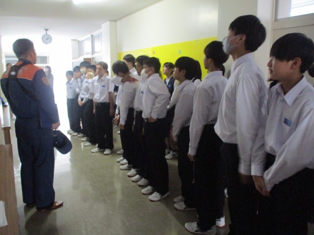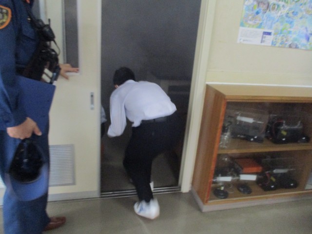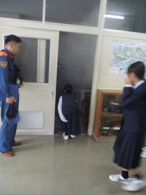 午後からはPTA主催の講演会がありました。その中で煙中体験を行い、生徒は火事を疑似体験しました。数メートル先も見えない中、可能な限り安全に進む術を学びました。万が一にも、火災には出会わないでほしいと願っていますが、誰にでも起こりえることと思って真剣に取り組むことが大切ですね。