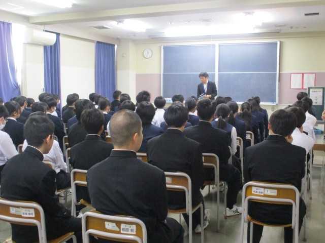 今日の学年集会では、校長先生から受験の考え方やテストの見直しの仕方、卒業後の自分の生活をイメージすることの大切さについて話をしてもらいました。家の人ともじっくりと話をし、自分の進路を決めていきたいですね。