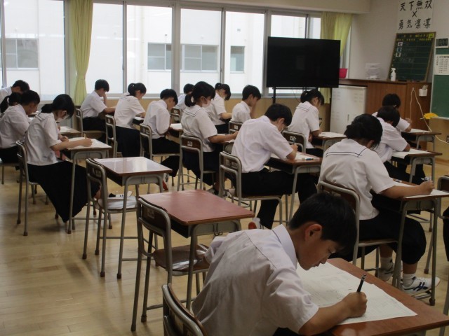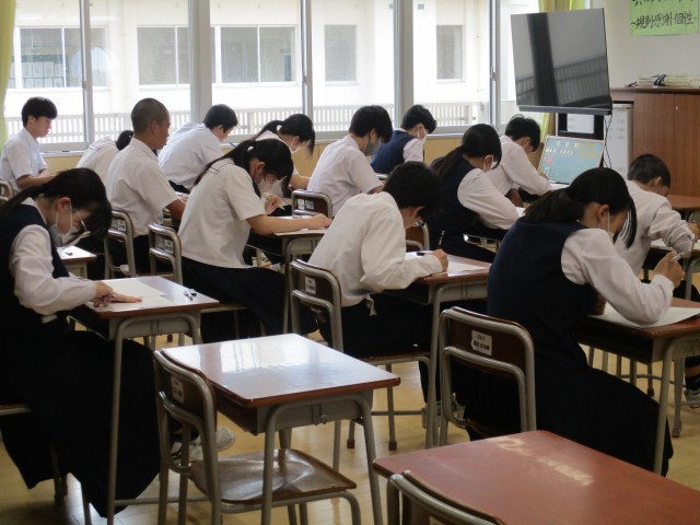 2階の第二理科室から出火した場合を想定し、火災の避難訓練を行いました。