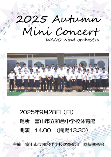 和合中学校 秋のミニコンサート(9月28日)のお知らせ
