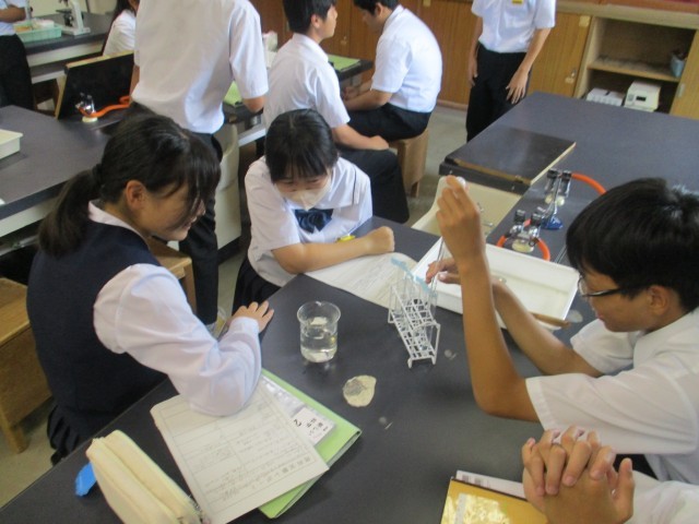 理科室で、だ液の働きを調べる実験に取り組みました。