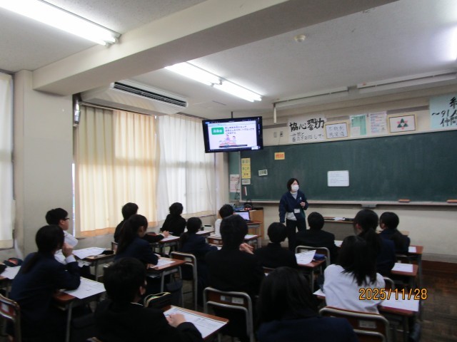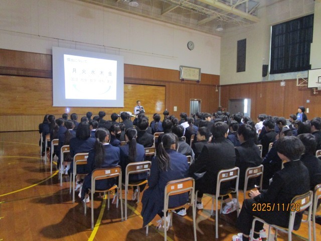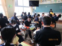 本日2年生の教室で『青少年健全育成書き初め行事』を行いました。この取り組みは、富...