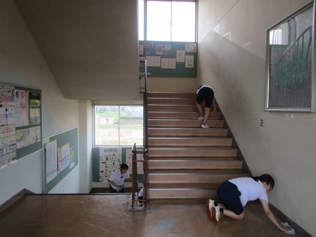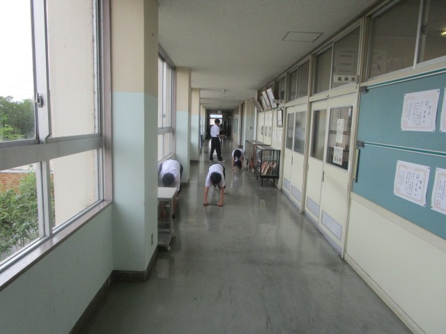 清掃の時間の様子です。今日も気温が高く、校舎内は蒸し暑いですが、生徒たちは熱心に清掃に取り組んでいました。隅々まで丁寧に雑巾がけをしている姿がとても素敵です。