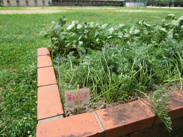 相談室・サポートルームでは、学校の花壇を活用して野菜を育てています。トウモロコシ、メロン、カボチャ、ミニトマト、春まきニンジン、セロリなど色々な種類があります。収穫が楽しみですね!