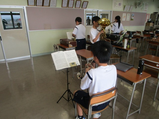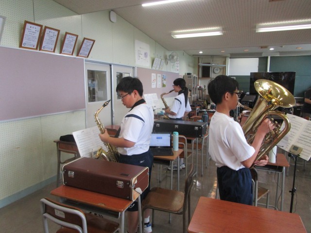 今日の吹奏楽部の活動の様子です。部員は、それぞれ目標をもって活動をしています。一人一台端末を活用しながら真剣に演奏していました。素敵です。