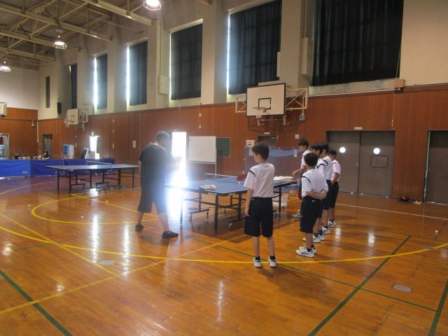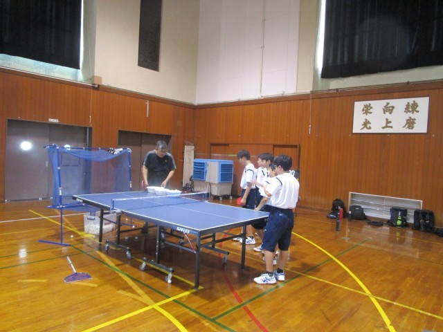 卓球部の活動の様子です。顧問からのアドバイスを熱心に聞いていました。