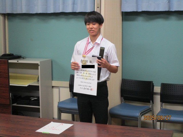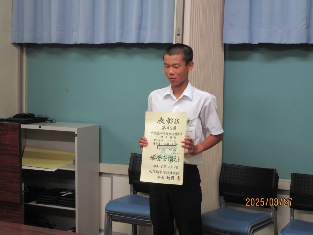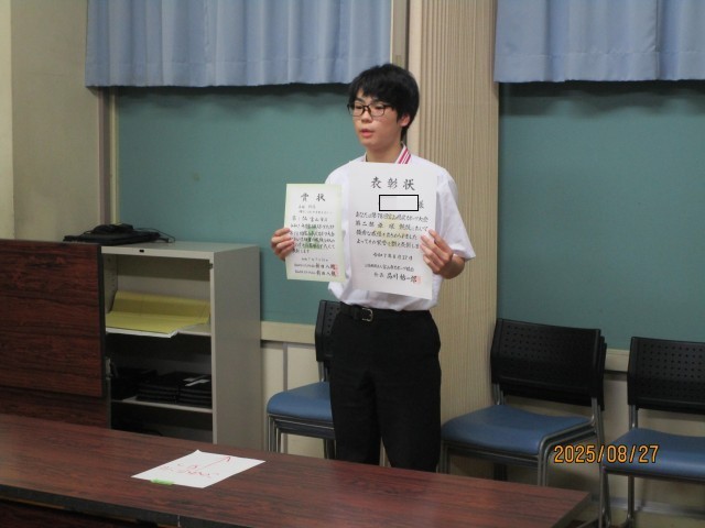 夏休み中に、富山県スポーツ大会や北信越大会で活躍した生徒が、受賞の報告をしました。今後の抱負も語りました。