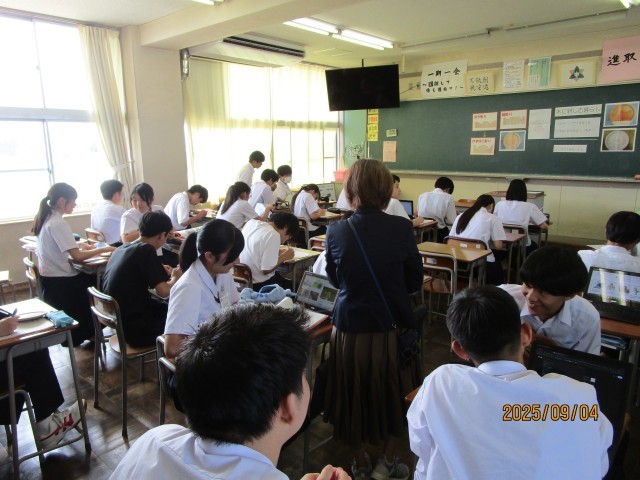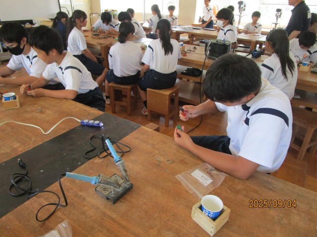 1組の数学は、1次関数の学習をしました。数学はTTで行っています。わからないとことをすぐに質問しやすいですね。2組の美術は、木彫でした。木の皿に彫る絵柄のデザインを考えました。3組の技術では、はんだづけを行いました。慎重に作業していました。正確に出来上がるといいですね。