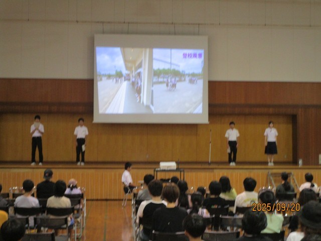学校公開日の様子です。本日は多くの6年生、保護者の皆様にご来校いただきありがとうございました。授業公開の後は、体育館で学校説明を行いました。校長が校訓や学校の様子について話しました。生徒会執行委員からは、中学校生活について、各部活動の部長から活動内容について紹介しました。6年生の皆さん、皆さんの入学を心からお待ちしています。