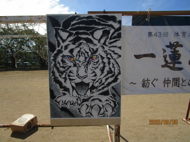 体育大会を彩ったデコレーションです。デコレーション係の生徒が、夏休みからデザインして作成した作品です。