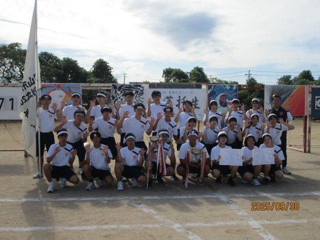 3年生の集合写真です。全校を引っ張るたくましい3年生の姿に、頼もしさを感じました。素敵です3年生!