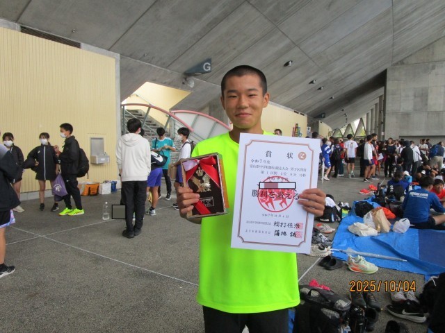 10月4日(土)に富山県中学校駅伝競走大会が富山県総合運動公園陸上競技場クロスカントリーコースで行われました。本校から男子チームが参加しました。陸上競技部、野球部、ハンドボール部、卓球部、サッカー部のメンバーが参加しました。1区では、この夏に沖縄県で行われた全国大会に出場した陸上競技部の生徒が区間2位の好成績でタスキをつなぎました。多くの生徒が自己ベストを更新することができたようです。走り終えた後のさわやかな笑顔が素敵ですね。