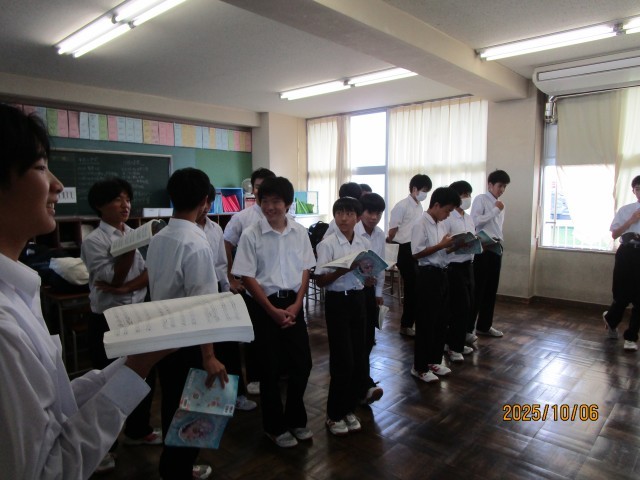 2年生の合唱練習の様子です。2年生は、昨年の取組を生かして2回目の挑戦となります。1年生と比べると、少し大人びた声になってきています。本番が楽しみですね。