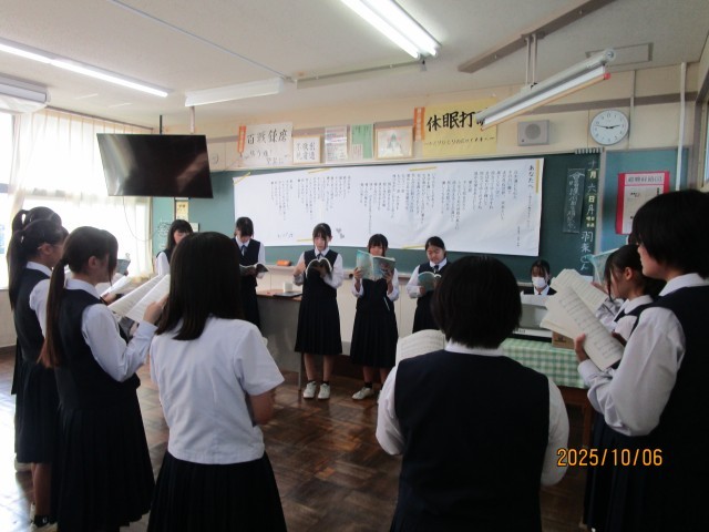 3年生の合唱練習の様子です。3年生にもなると初日から、気合いが入っていました。声量だけでなくしっかりと楽譜を読み込んで表現してほしいですね。