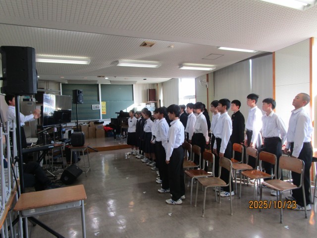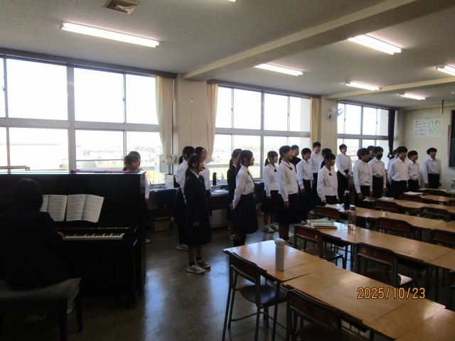 1年生の合唱練習の様子です。合唱コンクールまで1週間を切りました。1年生らしく元気な歌声が響いていました。中学校生活初めてのコンクール。緊張するかもしれませんが笑顔で歌いきることを願っています。