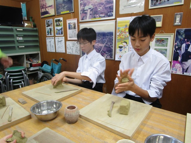 北代縄文広場では、縄文土器を作る体験もしました。焼き上がりが楽しみですね。