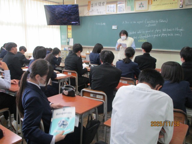 3年生の総合的な学習の時間の様子です。3年生は、教育委員会からのアンケートに一人一台端末を使って回答したり、来週行われる実力テストに向けて、日程等を確認しました。期末考査が終わったかと思ったら、すぐに校内実力テストが行われます。希望する進路に向けて、頑張れ3年生!