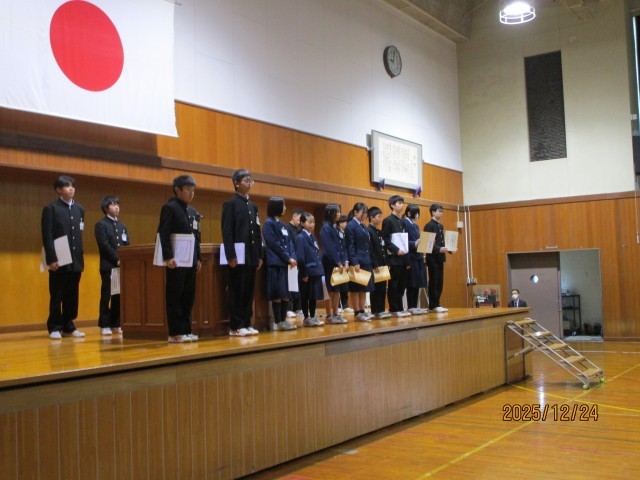 本日、受賞報告会を行いました。運動部の生徒は、全国大会やブロック大会の出場、市や県の大会で上位入賞を報告会しました。また、文化的な活動での受賞も多くありました。色々な場面で多くの生徒が活躍しました。