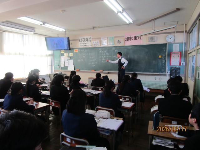 2年生の授業の様子です。1組の英語では、受け身の学習をしていました。いろいろな状況を例にして、受け身表現の理解を深めました。2組の技術では、クランク機構の仕組みを紙で作って学習しました。3組の社会は、歴史分野で明治時代の政治について学びました。2年生の学習も終盤に差し掛かっています。頑張れ2年生!