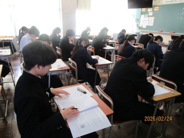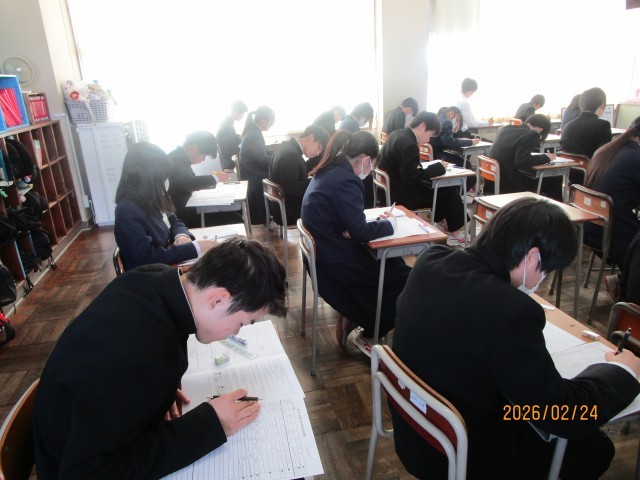 2年生の学年末考査の様子です。本日から3日間の日程で学年末考査を行います。どの生徒も真剣にテストに取り組んでいます。3年生への学びに繋がるように、最後まであきらめずに力を発揮してください。