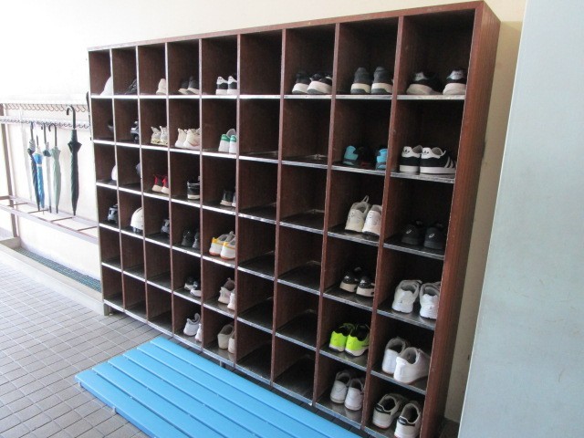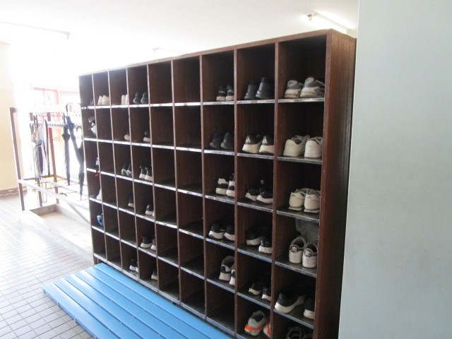 生徒会が行っている「KKR運動」靴の・かかと・そろえよう運動のおかげで、下足はいつもピシッとそろっています。一人一人が心遣いをしていることが伝わってきます。