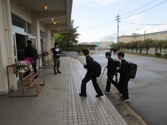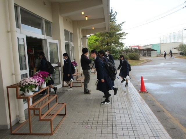 今朝は早朝までの雨がやんで、生徒も雨にぬれずに登校できました。