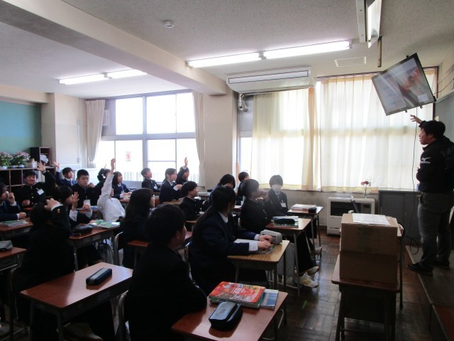 写真2枚目:社会では都道府県について、写真を見ながらクイズ形式で答えています。