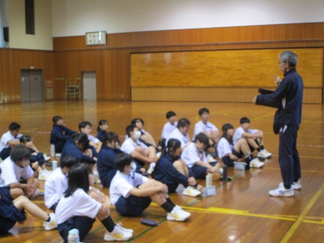 写真3枚目:保健体育では、体育の授業の受け方についてオリエンテーションをしています。