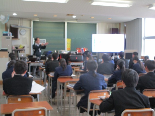 写真1枚目:1組の数学は、数学の授業の進め方についてオリエンテーションをしています。
