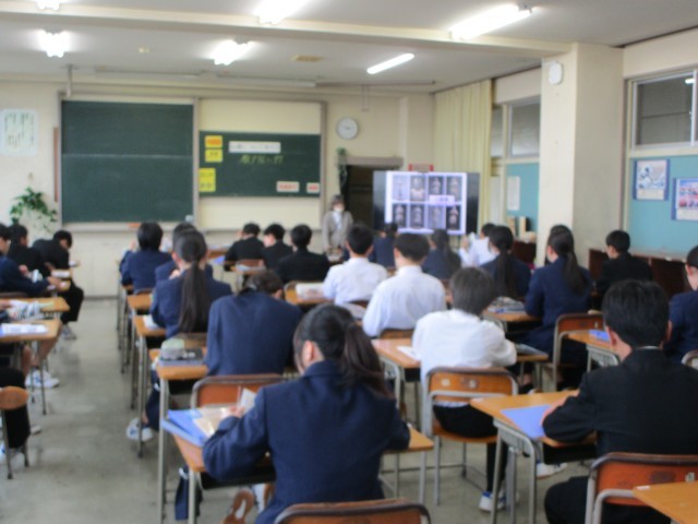 写真3枚目:3組の美術では、仏像についての学習です。手の形にもそれぞれ意味があるようです。