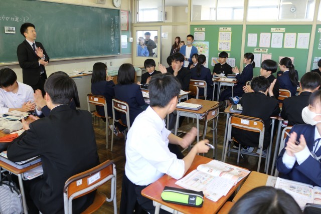 写真3枚目:3組の家庭科では、衣服の色や柄の効果について考えました。