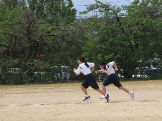 1枚目:1組保健体育では、100mのタイムを計っています。昨年よりタイムは縮まりましたか?