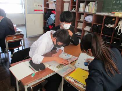 明治時代の絵から西洋の影響を受けたものをグループで見つけました。